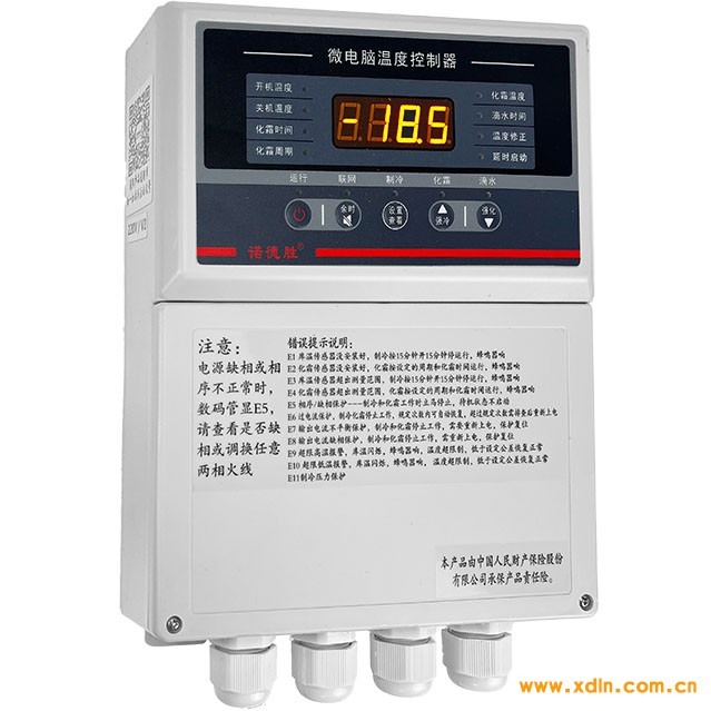 电压220V/380V可用,提供制冷、化霜控制输出,相序检测、电流检测和保护功能,具有温度测量、显
